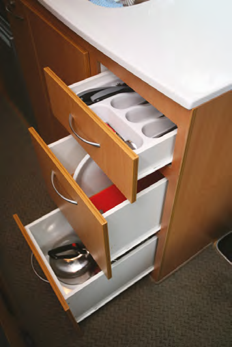 A slightly less obvious shift that we have noticed has been a better use of space. A good example being drawers – they might have less capacity than an open space but when used in kitchen benches, below seats or under beds, they are very efficient storage devices. Island and single beds are often set at quite a low height but having a bed raised up slightly does mean there is more storage space underneath. Often the air space above a bed is used for overhead lockers but we’ve seen a design where a half height wardrobe used the air space at the foot of a single bed.