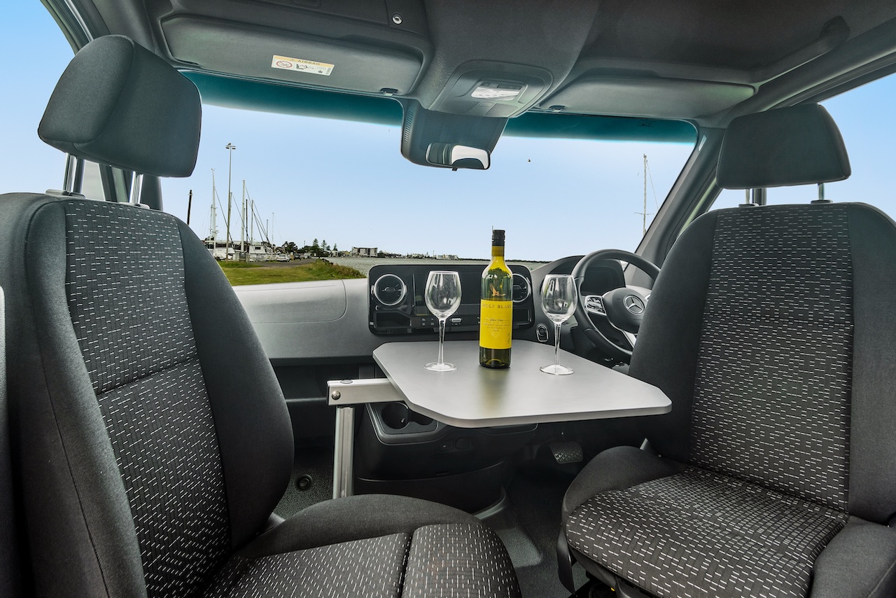 There is a Lagun-mounted table between the swivelled cab seats when dining time comes. Otherwise, it’s alfresco dining. What could be more enjoyable in a quiet and pleasant campsite, especially if the wine is appropriately chilled?