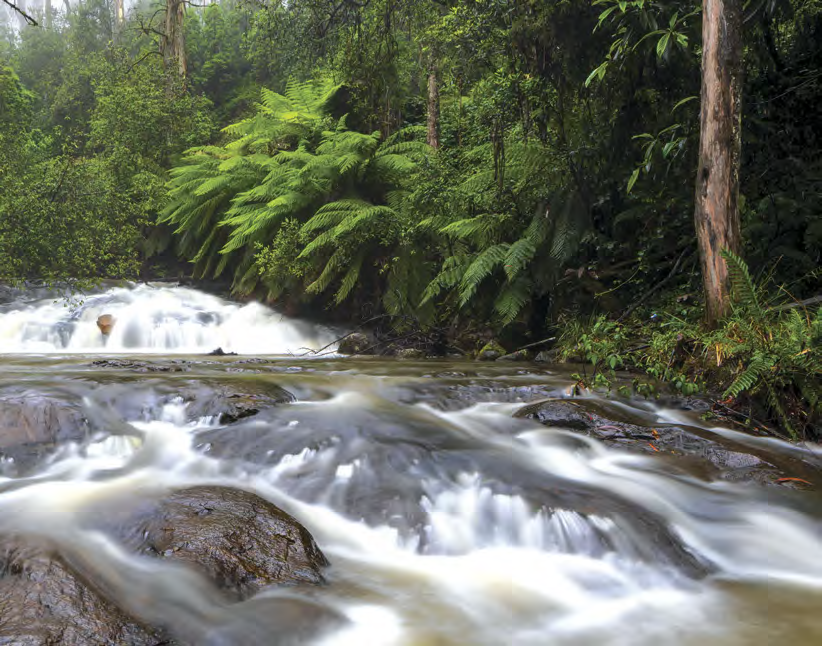 Get down low to the water and use a wide-angle lens, using leading lines (a shallow creek beneath the waterfall, perhaps) to create a more interesting composition. Beware of water spray on lenses and try to reduce clutter and distractions such as protruding branches and logs from straying into the image.