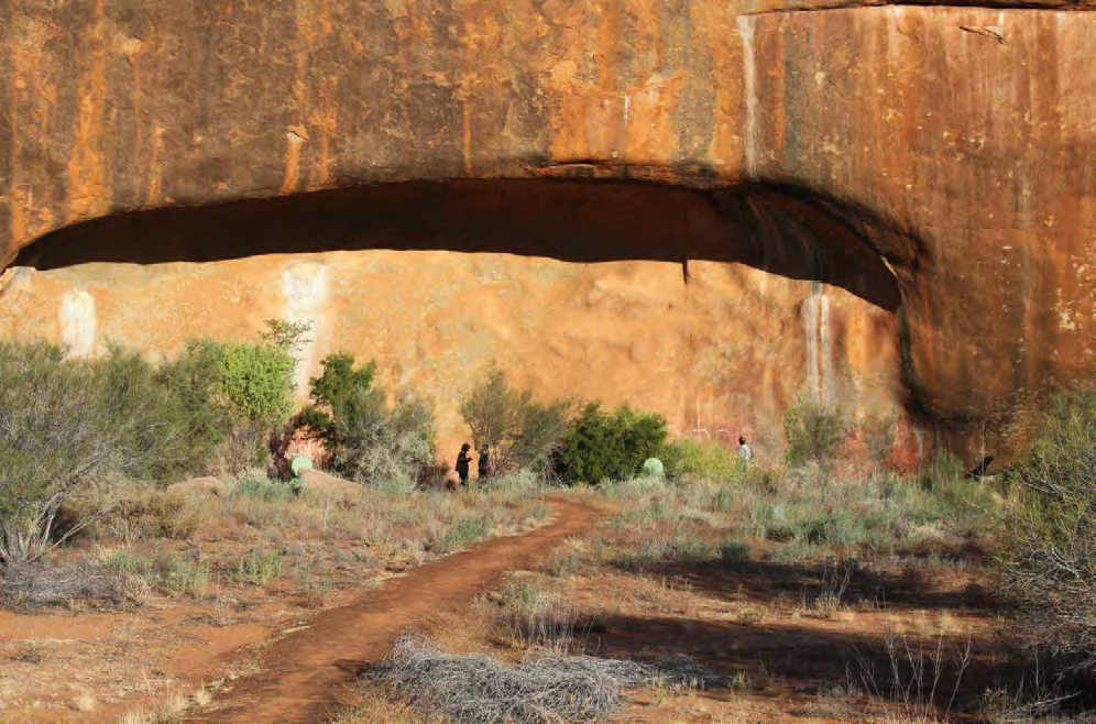 The Walga art site can be reached by a dusty, in some sections quite corrugated, gravel track from Yalgoo, approximately 160 kilometres to the south-west, or by a partly sealed (11 kilometres) and reasonable gravel road 47 kilometres west of Cue. There are no real camping facilities available at Walga Rock, although there is plenty of open space nearby which is quite suitable for bush camping. Visitors here should bring all their own water and supplies. A climb to the top is quite rewarding with extensive views over the surrounding countryside and after rain, the sight of many shallow rock pools. One of the easiest access points to the top is located around 300 metres to the left of the art site where there is a relatively gentle slope leading to the summit. In the area here, look out for a resident herd of wild goats which are often seen browsing on the foliage which grows in crevices and depressions in the rock surface.