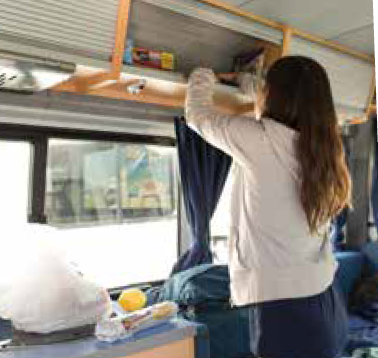 Outside, there is plenty that can be done. Doing a thorough wash means that an inspection can be done at the same time. Giving your vehicle a good hose down will also reveal any external bins that are leaking. Out of sight, and often out of mind, is the roof area. A good ladder is certainly essential for safety reasons, but the various hatches and any solar panels are always in need of a clean from time to time. Treat any acrylic windows with care when cleaning, and it’s best to have a dedicated soft brush for this job.