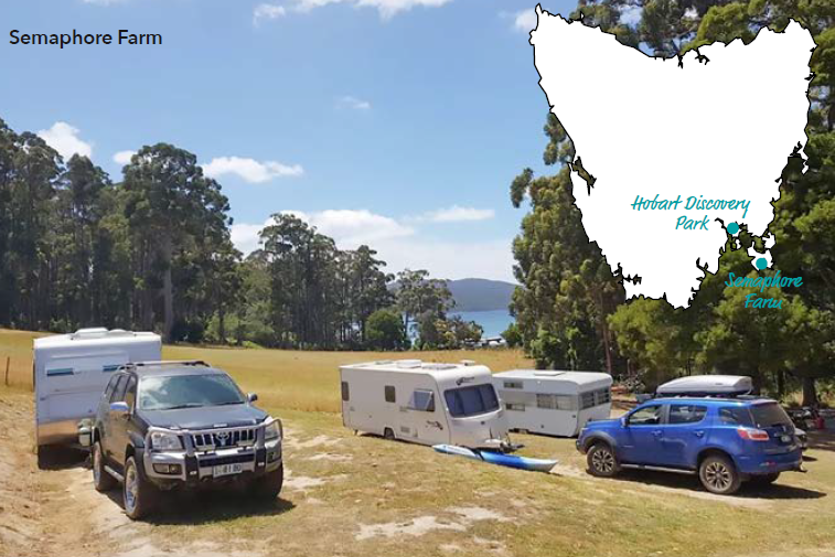 Semaphore Farm is a 400-acre HipCamp property with convict history, bordering the Port Arthur historic site. Hay and beef are grown here, and it’s also a working forest farm with a private timber reserve.