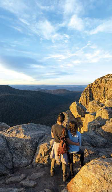 Namadgi National Park occupies almost half the Australian Capital Territory’s land area. There are 160km of short and long hikes through alpine meadows and snow gum forest. The trek to the Yankee Hut Shelter cuts through grasslands towards an Indigenous rock art site illustrating dingoes, turtles, and kangaroos.