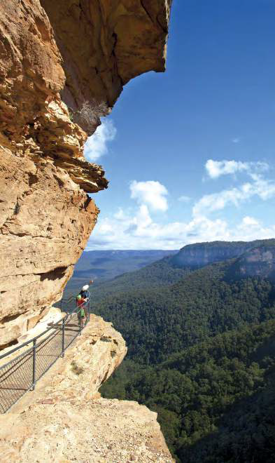 The Blue Mountains, west of Sydney, is peppered with great hikes that can last from a few hours to a few days. If you do only one, make it the National Pass trail from Wentworth Falls. It starts with a sharp, stairway descent into the Valley of the Waters — aptly named for its many gushing waterfalls. Halfway down the trail levels out, following a rock ledge as it passes by, and behind are numerous cascades high above the Jamison Valley. Lookout points are strung out along the way as you shelter beneath sandstone overhangs and wrap around cliff walls to the actual Wentworth Falls, thereafter climbing the Grand Stairway back to the escarpment rim.