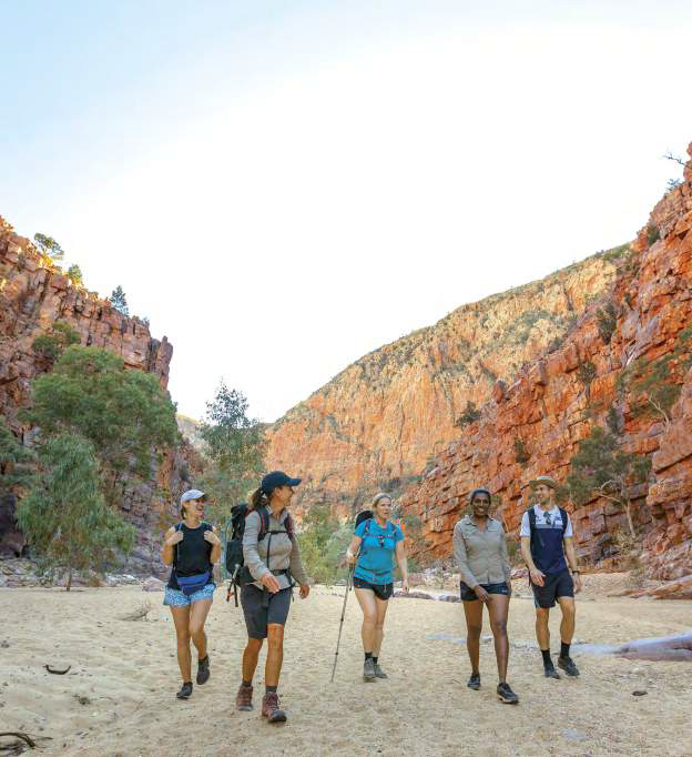 The Larapinta Trail is one of Australia’s iconic long distance hiking tracks, stretching for 223km through the Red Centre’s West MacDonnell Ranges. Even better is the hike through Ormiston Pound. Though it doesn’t form part of the Larapinta, it’s a side route that shouldn’t be missed, traversing a bowl-shaped depression to Ormiston Creek where magnificent gorge walls reaching 300m upwards often reflect the fiery afternoon sun.