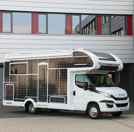 The German-made e.home (pictured right) is the first prototype for a battery-powered motorhome. Covered in 334 square feet of solar panels, it is expected to be released on the market in 2020. Built by Dethleffs, the e.home is based on the Iveco Daily electric chassis with a liquid-cooled three-phase AC motor, with a power of 80kW. It has a ‘CampConnect’ system which means everything from heating, lights, power, and central locking can be controlled via an app. Company spokesperson Anita Lorenscheit says there’s also a focus on safety. “We have installed an innovative safety system called ‘Mobileye’ which provides a ‘third eye’ in order to keep track of situations in front of the vehicle. It identifies potential danger on the road and forewarns the driver by acoustical and optical signals.”