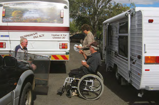 Lindsay and Val helped a wheelchair bound friend see Australia. They set up a shower and other facilities on the front of the bus to assist their friend